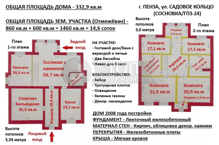 ОБЩАЯ ПЛОЩАДЬ ДОМА: 332,9 кв.м.