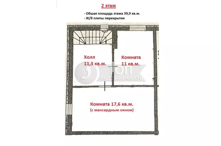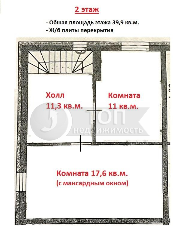НА ВТОРОМ ЭТАЖЕ расположены 2 просторные, изолированные жилые комнаты 17,6 + 11 кв.м., а также просторный холл 11,3 кв.м.