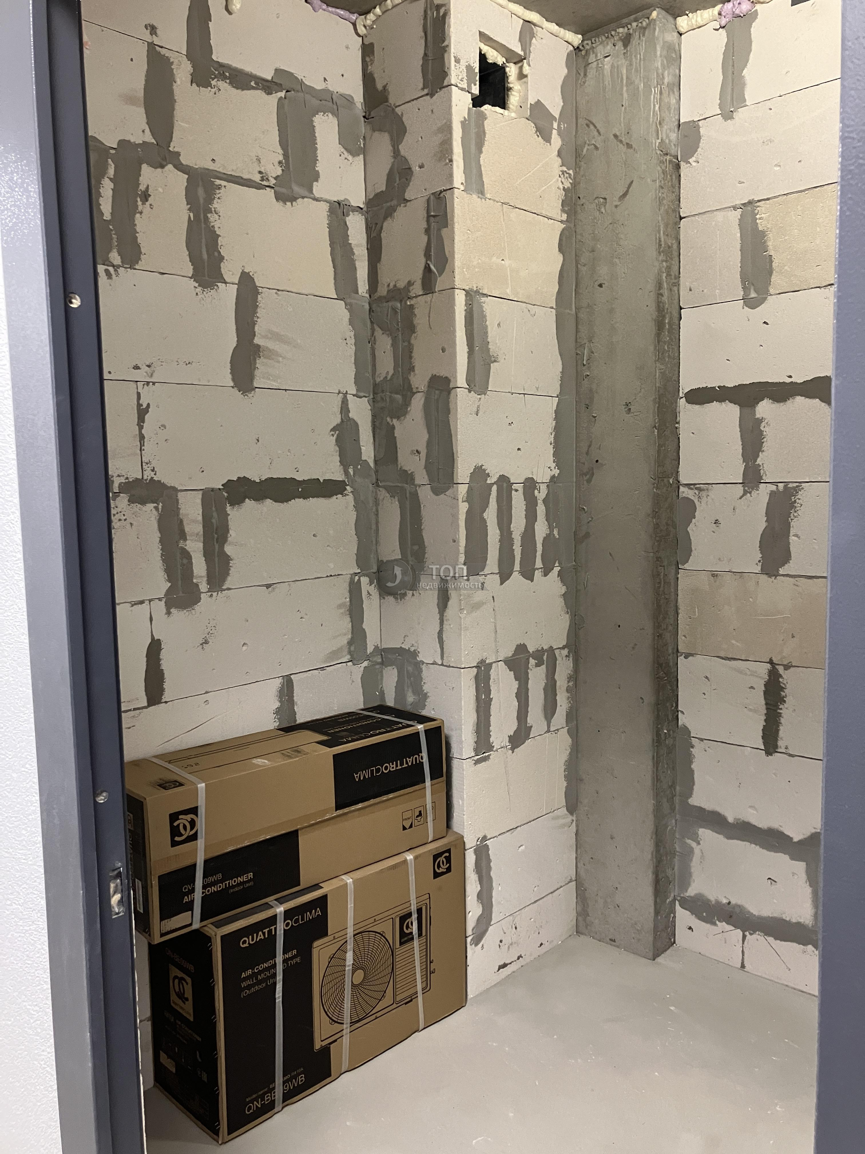 Приобреталась у застройщика по ДДУ со счетом эскроу. Кладовка с черновой отделкой, электр.счетчик, расположена в общем тамбуре на этаже.