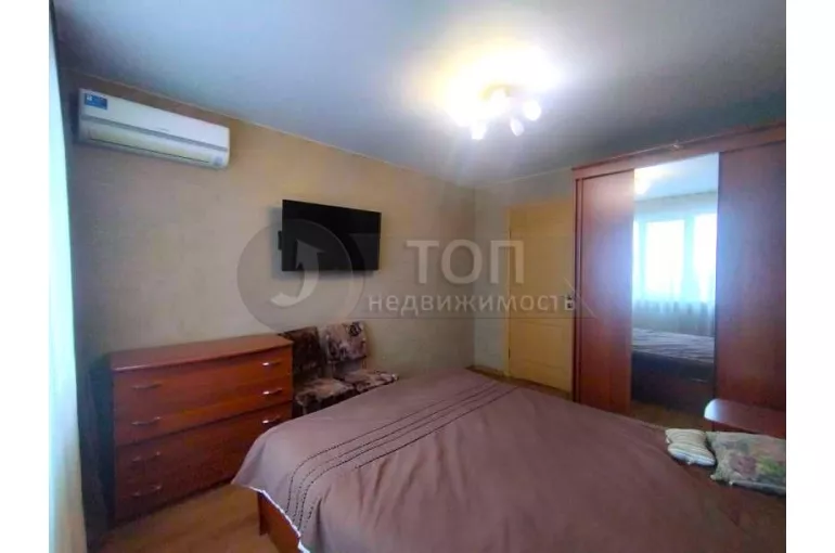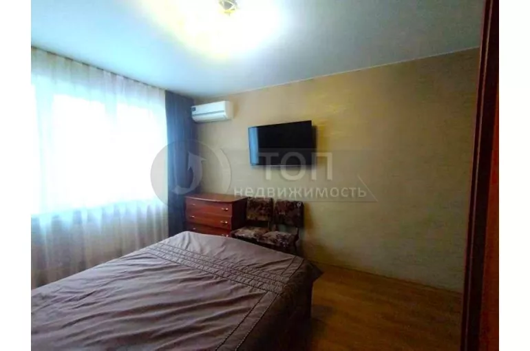 В спальне расположены БОЛЬШАЯ двуспальная кровать с ортопедическим матрасом, шкаф-купе, прикроватные тумбочки, телевизор и КОНДИЦИОНЕР!