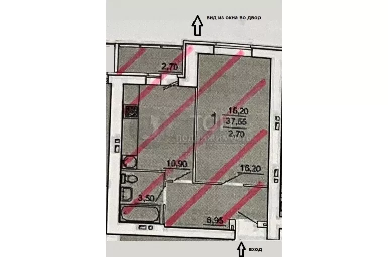 Общ.площадь квартиры 37.5 кв.м. + 2,7 кв.м. лоджия.