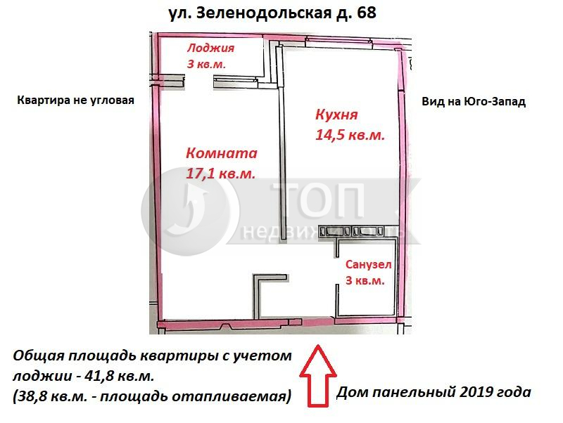 - Общая площадь квартиры – 38,8 кв.м. (+ лоджия 3 кв.м. с панорамным остеклением и отличным видом на закаты);